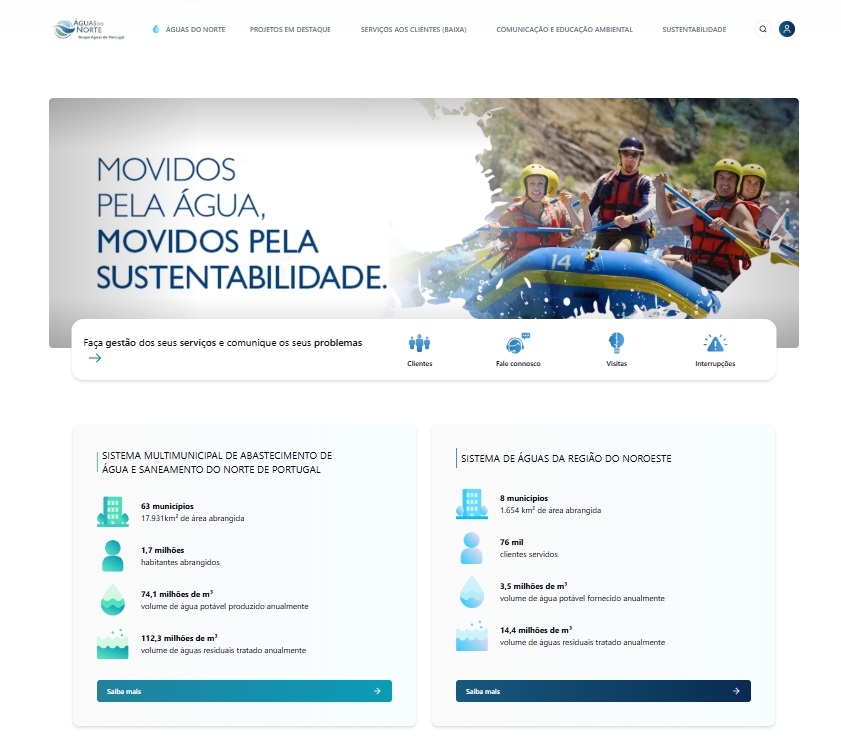 A Águas do Norte lançou o seu novo website institucional, uma plataforma renovada, mais intuitiva e centrada nas necessidades dos seus clientes, reforçando o compromisso da empresa com a inovação digital, a transparência e a proximidade com os utilizadores do sistema multimunicipal de abastecimento de água e de saneamento do Norte de Portugal, em “alta”, e todos os seus clientes finais do Sistema de Águas da Região do Noroeste, em “baixa”.