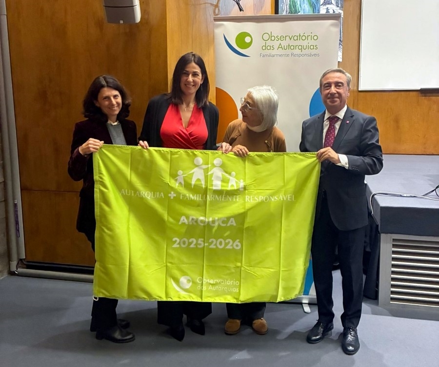 O Município de Arouca voltou a ser distinguido como “Autarquia + Familiarmente Responsável” pelas suas políticas de apoio às famílias, tendo recebido, pelo terceiro ano consecutivo, a Bandeira Verde do Observatório das Autarquias Familiarmente Responsáveis. A cerimónia de entrega da bandeira decorreu hoje, 19 de Novembro, na Faculdade de Economia da Universidade de Coimbra, e contou com a presença da vice-presidente da Câmara Municipal, Cláudia Oliveira.