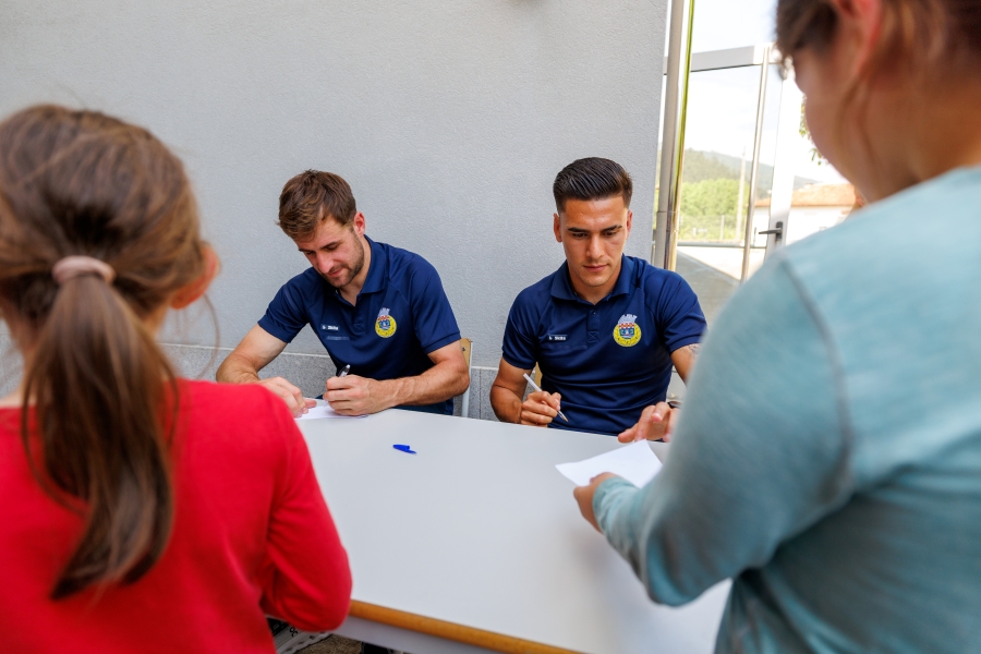 O ponta-de-lança Iván Barbero – o melhor marcador da equipa nesta segunda volta, com seis golos – e o extremo Brian Mansilla foram os embaixadores do FC Arouca na visita ao Polo Escolar de Rossas, onde foram recebidos por alunos, professores e funcionários. Os profissionais da equipa conduzida por Vasco Seabra e a mascote Ibéricus fizeram a alegria das crianças e pediram apoio para os lobos no importante jogo do próximo domingo, encontro da 30ª jornada que, em caso de vitória diante de um concorrente direto pela manutenção, atirará a equipa arouquense para uns super-confortáveis 35 pontos a quatro jornadas do fecho da Liga.