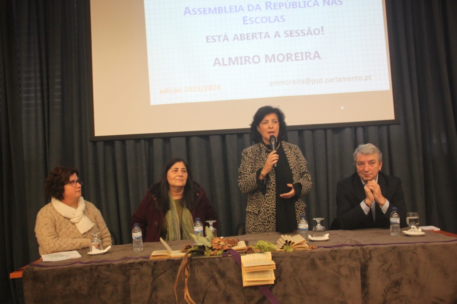 O deputado Almiro Moreira foi o orador da sessão do Parlamento dos Jovens que decorreu no auditório da Escola Secundária de Arouca. Eleito na lista do PSD pelo círculo eleitoral de Aveiro, o político natural de Castelo de Paiva representou o Parlamento português e deu lição sobre a democracia parlamentar aos alunos participantes do Programa Parlamento dos Jovens, uma iniciativa promovida pela Assembleia da República, com o apoio do Ministério da Educação, das Regiões Autónomas, do IPDJ e outras entidades. O programa, coordenado, nesta escola arouquense, pela professora Susana Cunha, evidenciou alta adesão por parte dos alunos do ensino secundário, tendo-se apresentado a sufrágio oito listas de alunos candidatos a deputados escolares em torno de propostas que contemplavam a Literacia Financeira como tema aglutinador do Parlamento dos Jovens 2025/2026, no quadro de desenvolvimento de propostas e competências de cidadania activa e argumentativas dos participantes.