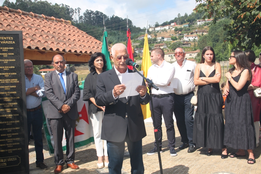 «A freguesia de Várzea passa a ter a partir de hoje um monumento em memória aos combatentes que serviram o nosso país no Ultramar. A guerra do Ultramar representa uma mancha cinzenta na nossa história. Pais, mães, esposas e filhos viram partir para a guerra os seus entes queridos na flor da idade, deles ficaram sonhos e projectos adiados à espera de melhor oportunidade e à espera do dia do regresso a casa. Tínhamos, por isso, de respeitar e homenagear a memória daqueles que em nome da identidade nacional e ao serviço de Portugal passaram momentos que dificilmente esquecerão e dos que deram a vida pela Pátria. Para todos os combatentes, e sobretudo em memória dos que já partiram, todos sem exceção, serão para sempre imortalizados neste memorial em sua honra. Serão sempre recordados com saudade e com reconhecimento pelo serviço prestado à Pátria.»