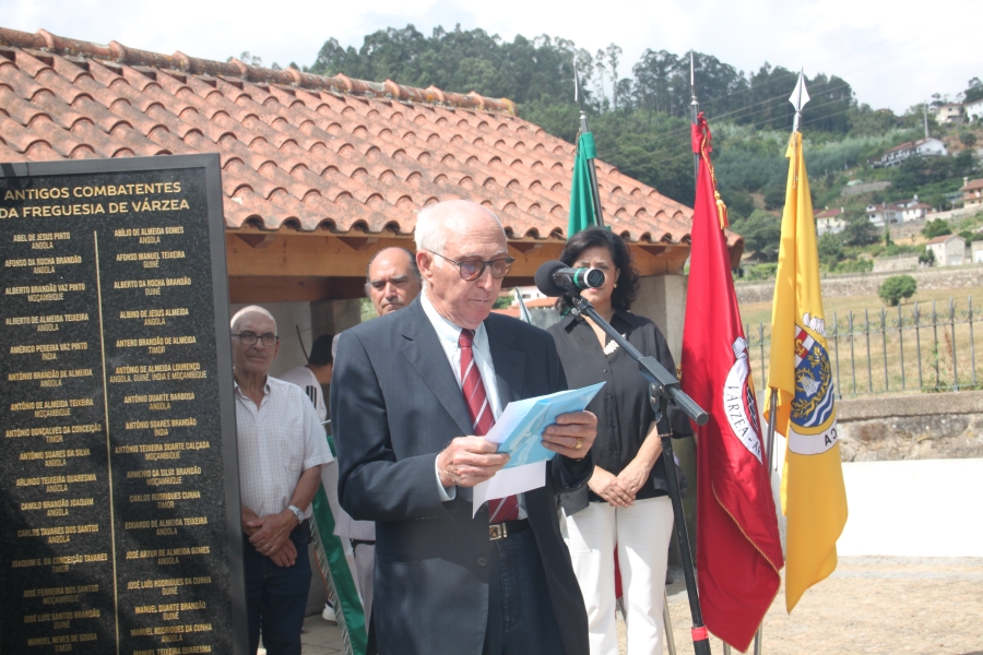 «Agradeço o amável convite que nos foi endereçado para nos associarmos ao evento festivo de inauguração deste monumento digno de lembrar os ex-combatentes da freguesia de Várzea. Encontrámo-nos aqui não para fazer a apologia da guerra, mas para prestarmos a nossa homenagem aos jovens desta freguesia que deram à Pátria o bem mais precioso que tinham – a sua vida. Foram cerca de três mil jovens arouquenses que estiveram envolvidos na guerra do Ultramar. Queremos, por isso, respeitar a memória daqueles que em nome da identidade nacional e ao serviço de Portugal, passaram horrores que dificilmente esquecerão e sobretudo aqueles que deram à Pátria o seu sangue generoso. Curvamo-nos em sinal de respeito e em sua honra. Todos os combatentes arouquenses que ficaram traumatizados física e psicologicamente merecem que não os esquecemos.»