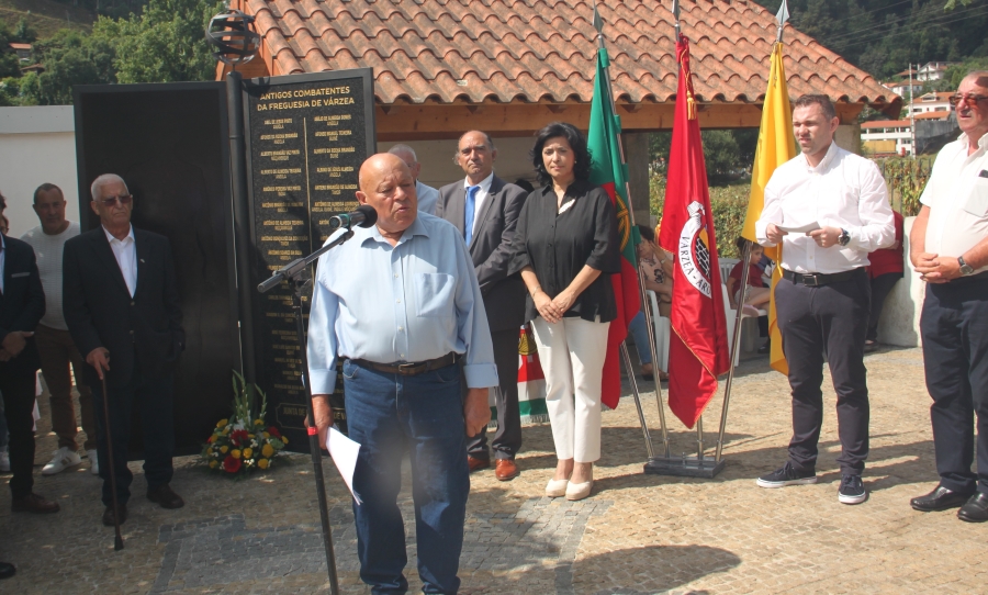 «Um agradecimento à Junta e à Assembleia de Freguesia, porque desde a primeira hora estiveram sempre disponíveis para realizar este evento em memória dos ex-combatentes. Também um agradecimento especial a um jovem, ao senhor Sérgio Manuel Azevedo porque um dia levou a uma assembleia uma proposta de louvor a todos os ex-combatentes de Várzea. Somos um grupo de ex-combatentes que representam toda a freguesia de Várzea. Somos aqueles que na flor da idade fomos tirados aos nossos pais e familiares para ir combater em África numa guerra que não queríamos. Deixamos os nossos pais a chorar e sem saber se voltaríamos. Nesta placa constam representantes de quase todas as famílias de Várzea dos anos sessenta e setenta.»