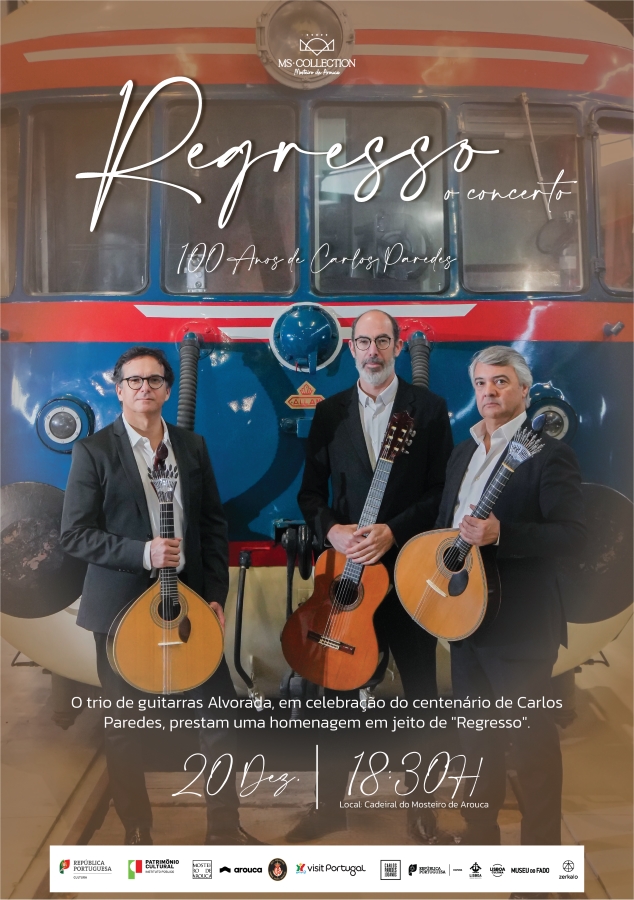 O Município de Arouca, em parceria com o hotel MS Collection Mosteiro de Arouca, irá promover, no próximo dia 20 de Dezembro (sábado), pelas 18h30, no Cadeiral do Mosteiro de Arouca, um concerto comemorativo do 100.º aniversário do nascimento de Carlos Paredes pelo Grupo Alvorada. O evento é um tributo a um dos símbolos ímpares da cultura portuguesa, o compositor e guitarrista nascido a 16 de Fevereiro de 1925 em Coimbra, e falecido a 23 de Julho de 2004 em Lisboa. Carlos Paredes, mestre da guitarra portuguesa, tem agora em Arouca um concerto de homenagem intitulado “Regresso”, que será concretizado pelo trio Alvorada, grupo composto por António José Moreira e Ricardo Dias, ambos em guitarra portuguesa, e Pedro Lopes, em viola. MMS/RV