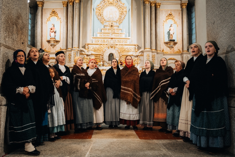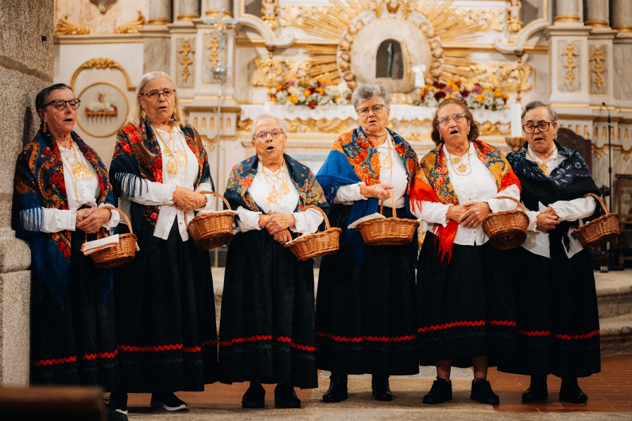 As cantadeiras do Conjunto Etnográfico de Moldes abriram o espectáculo, entoando a duas e três vozes, corais polifónicos de cariz sagrado e profano, de letras simples e com uma solenidade que faz tornar sublime o que parece vulgar e aparente.